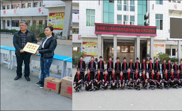 12月22日,财务处党支部支委洪锦标同志一行三人作为代表,带着268册图书前往富宁县捐书,捐赠图书活动受到了富宁县第一小学校领导的重视,学校组织孩子们着盛装参加了捐赠活动。