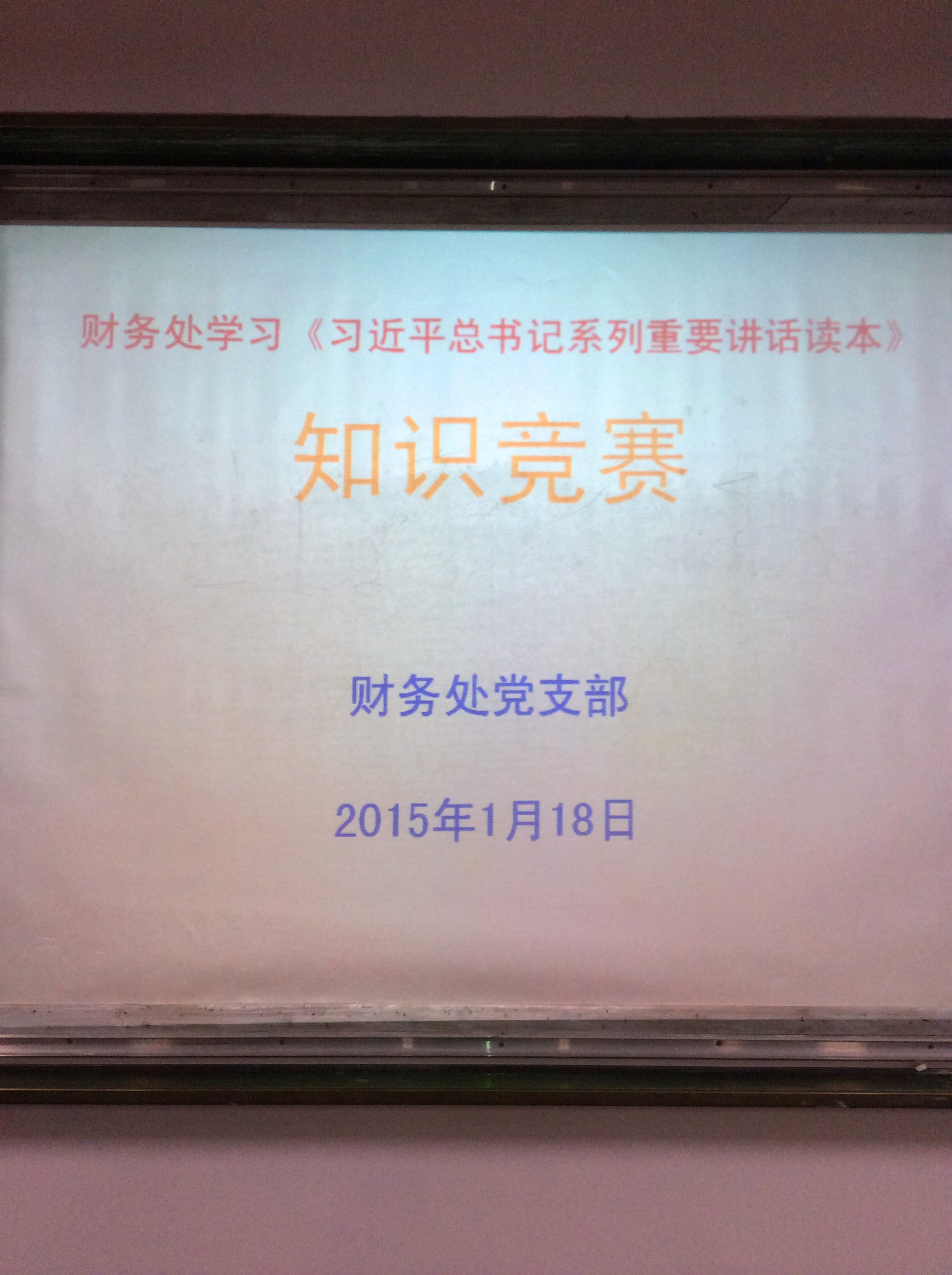 为深入学习《习近平总书记系列重要讲话读本》精神,2015年1月18日下午,财务处党支部在呈贡校区中心区教学楼105室,举办了“学习《习近平总书记系列重要讲话读本》知识竞赛”,校机关党委书记陈雁玲、副书记赵耕出席,财务处全体职工参加了本次活动。