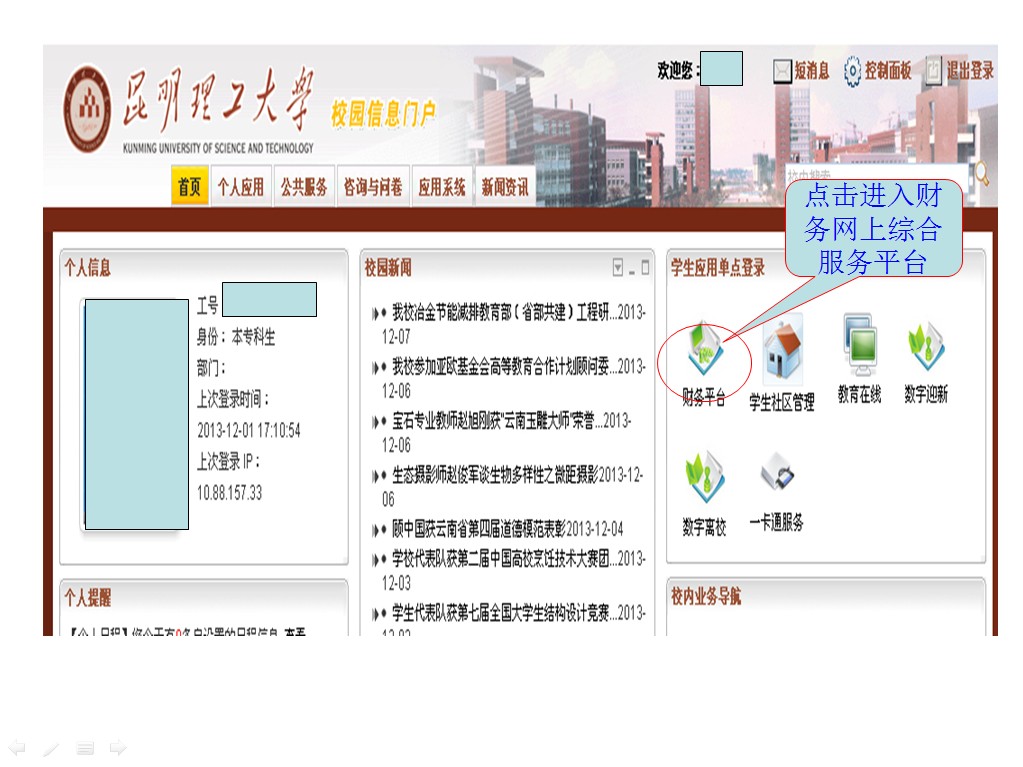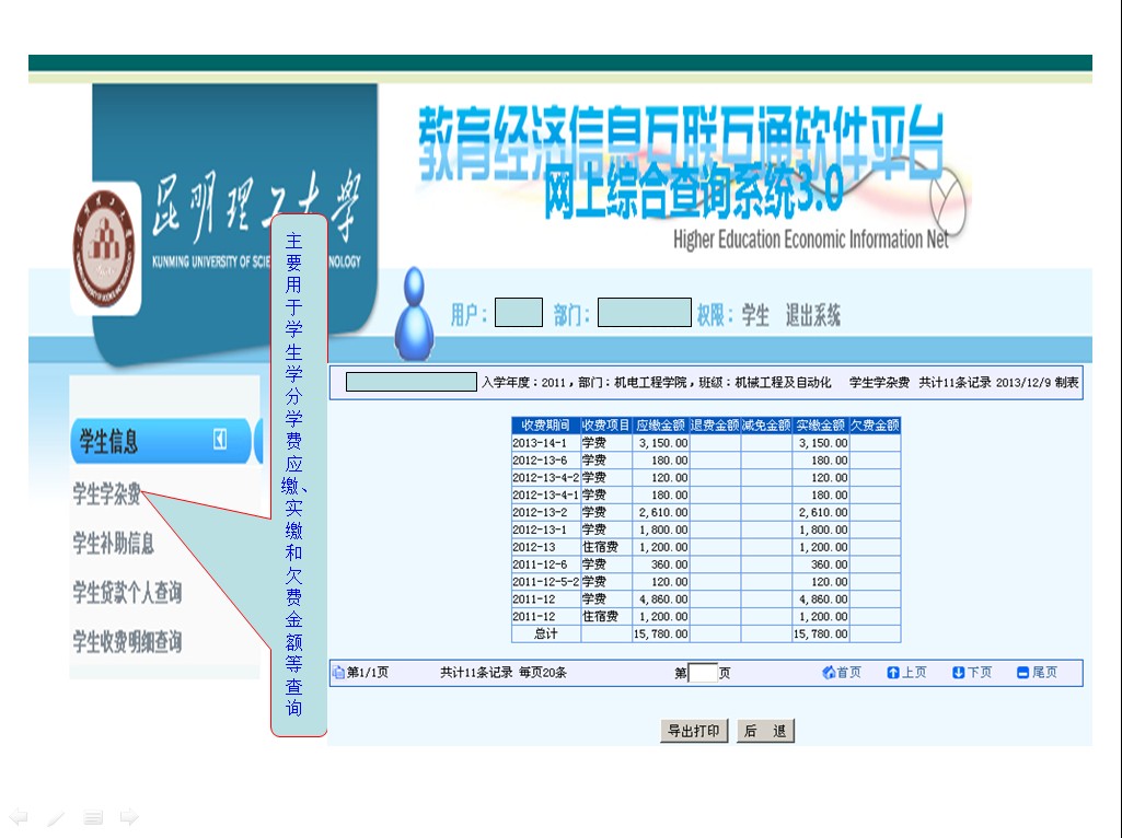 昆明理工大学学生学费收费系统查询平台操作指南