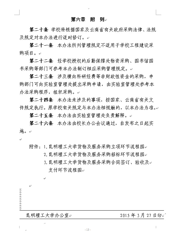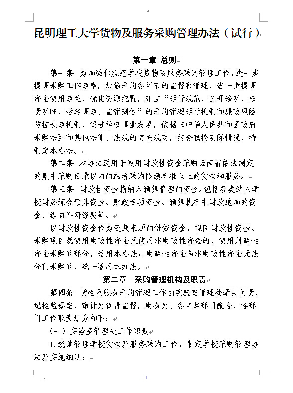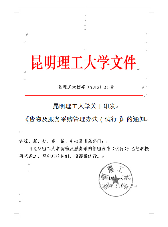 昆明理工大学关于印发《货物及服务采购管理办法(试行)》的通知