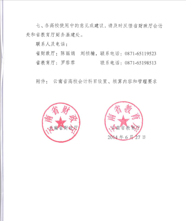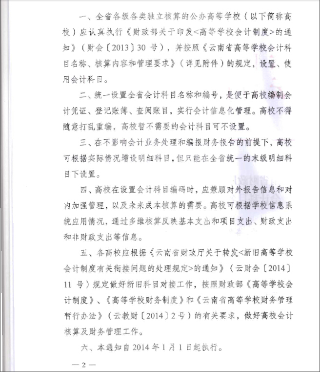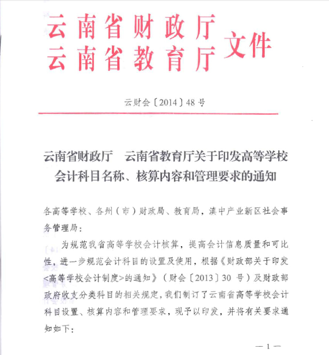 云南省财政厅 云南省教育厅关于印发高等学校会计科目名称、核算内容和管理要求的通知