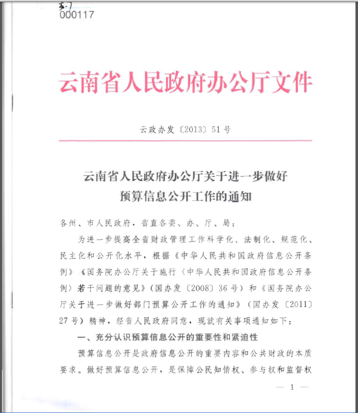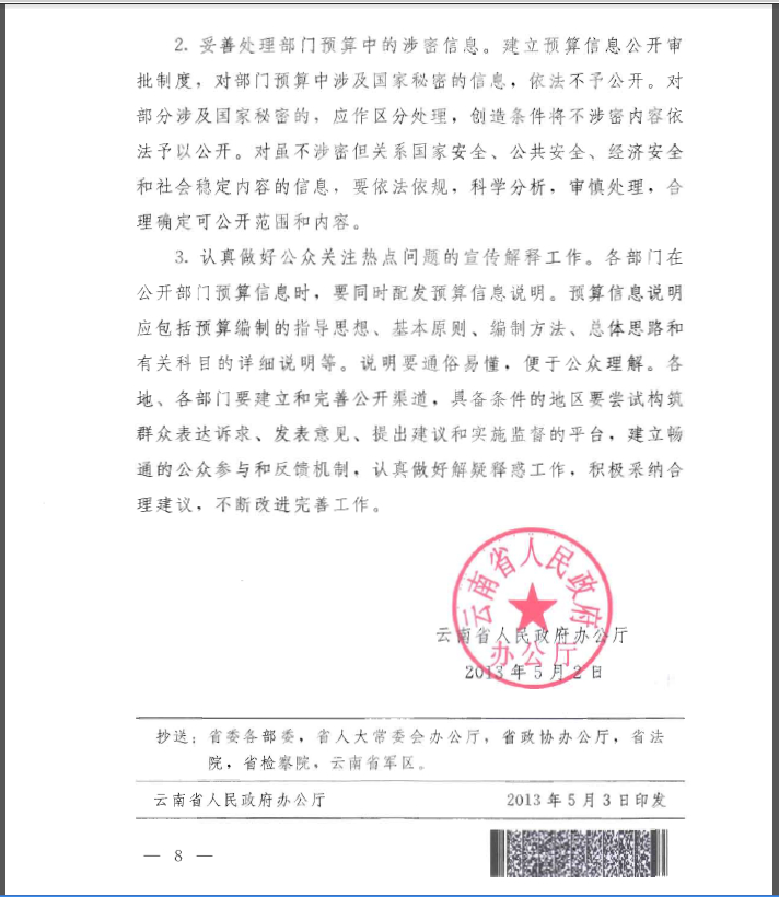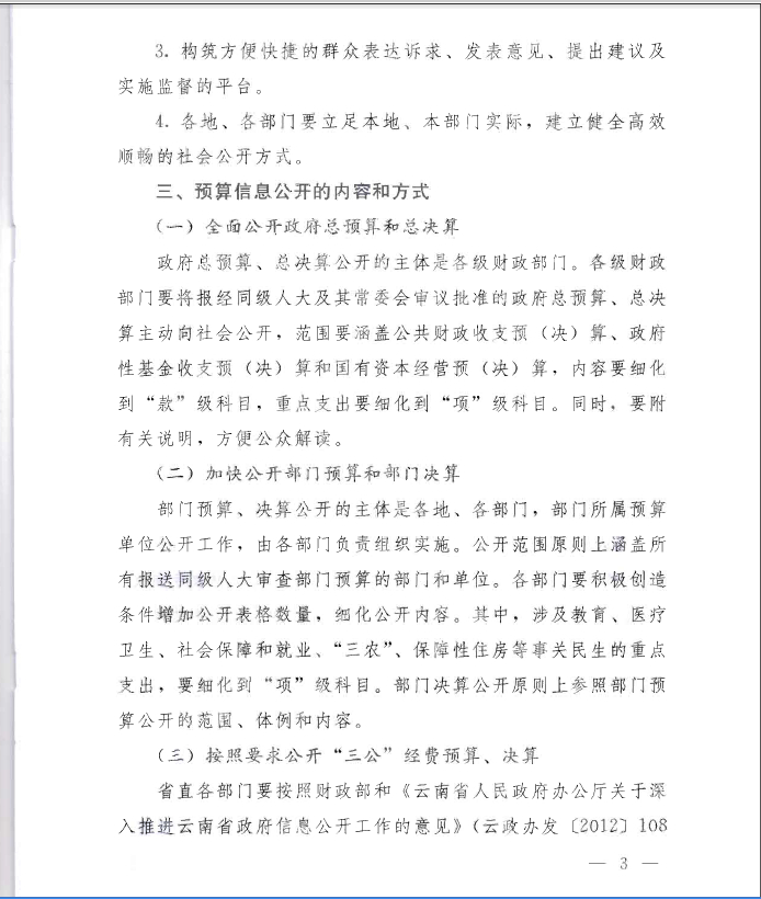 云南省人民政府办公厅关于进一步做好预算信息公开工作的通知